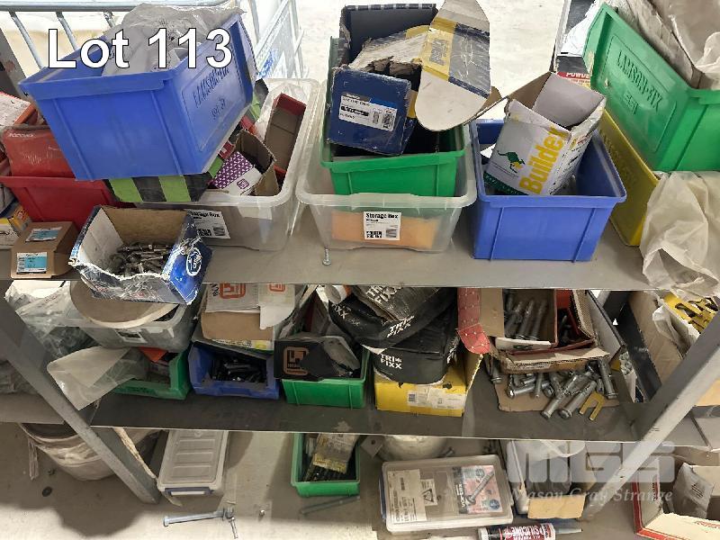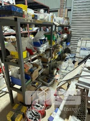 LARGE QUANTITY HARDWARE, NUITS, BOLTS, WASHERS, PLATES, SCREWS, RIVET, PIPE SUPPORT & LOCSONS