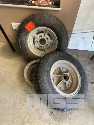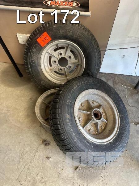 3 x CAST ALLOY TRAILER RIMS, 10" x 3.5 & 2 x TYRES