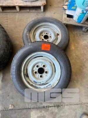 2 x EARLY 5 STUD HOLDEN RIMS, EH & HD & TYRES, 1 x TYRE NEW 175/14"