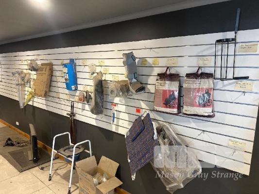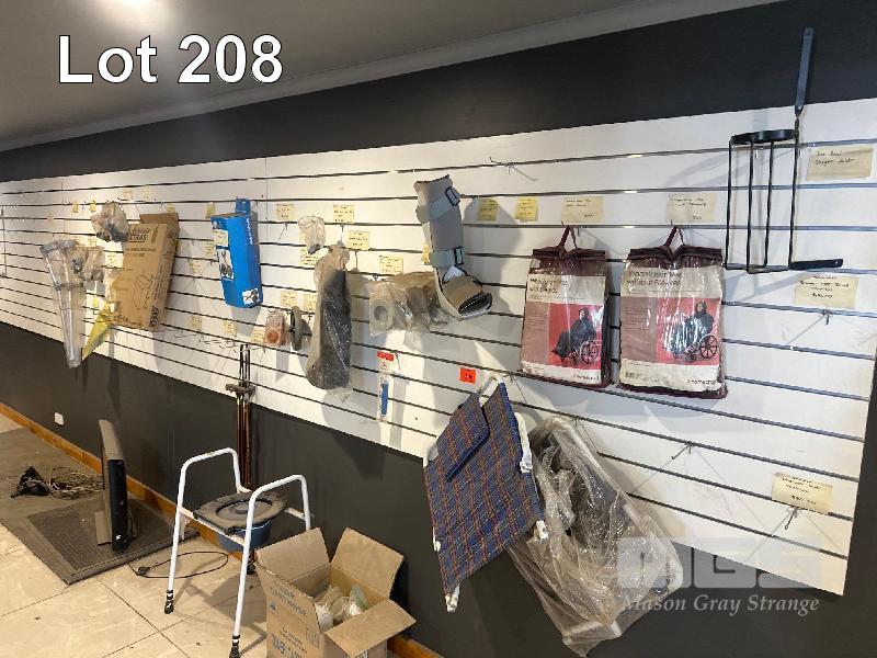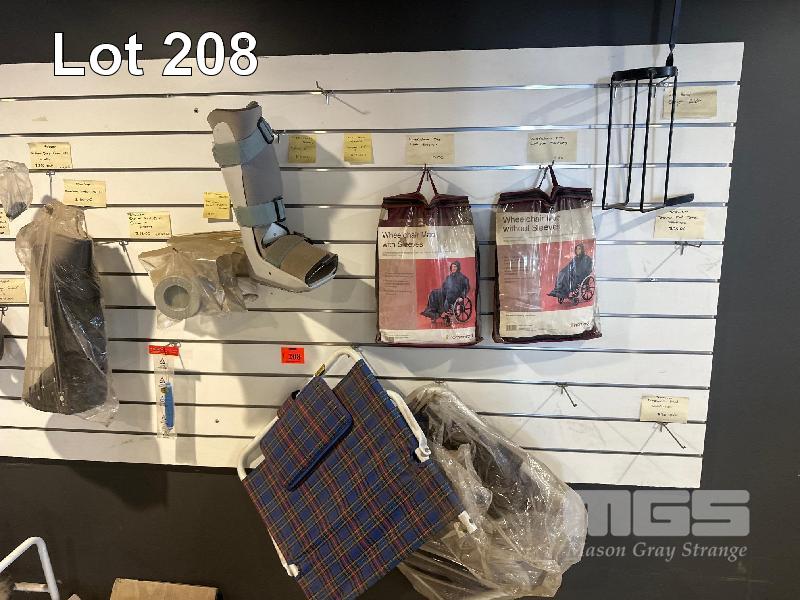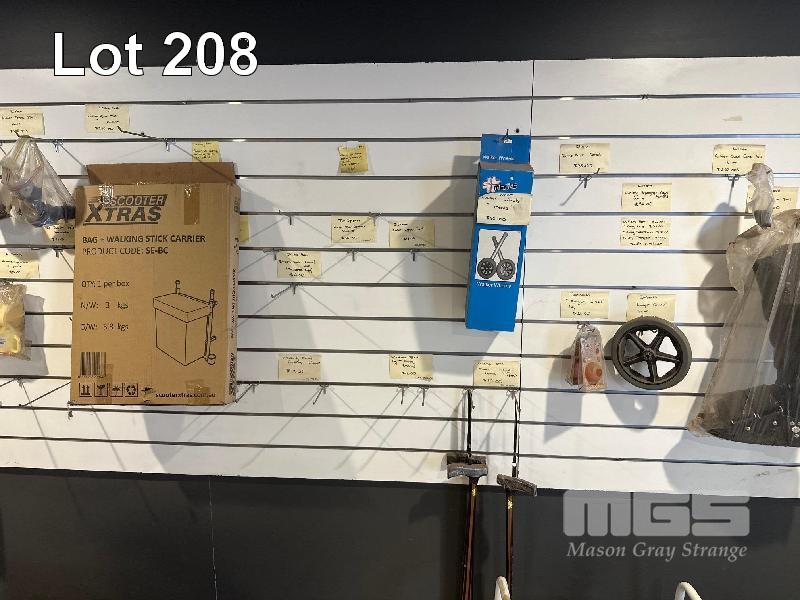 WHEEL CHAIN COVERS, CAMP SEATS, WALKER WHEELS, CRUTCHES, ETC CONTENTS WALL DISPLAY
