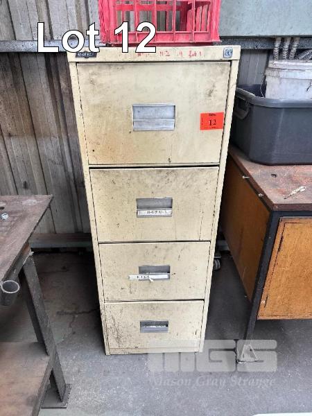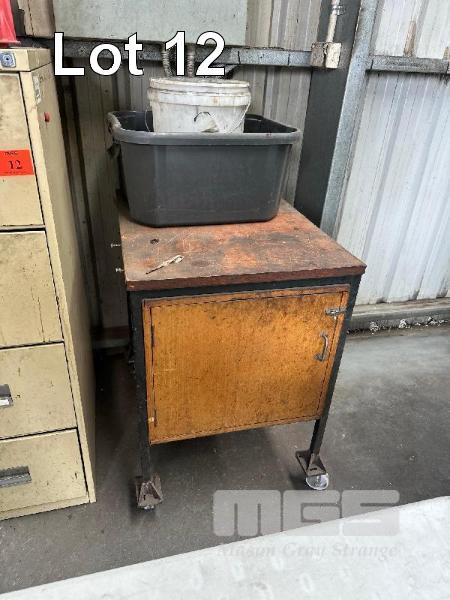 STEEL FILING CABINET, 4 DRAWER & MOBILE TIMBER/STEEL CUPBOARD