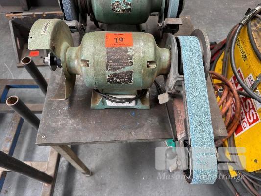 DOUBLE ENDED GRINDER, ABBOTT & ASHBY, 8" WITH BELT LINISHER 240V, & STAND NOT COMPLETE