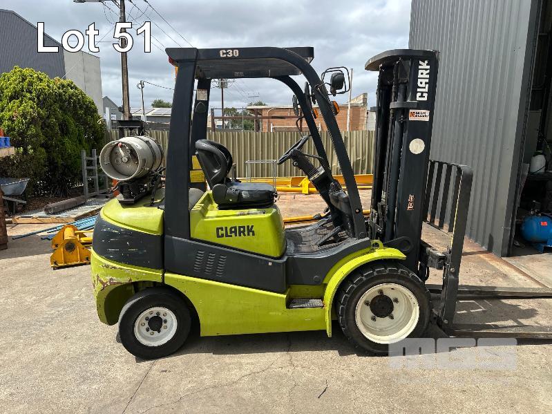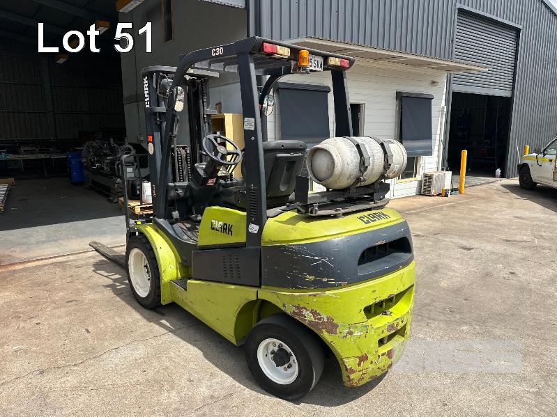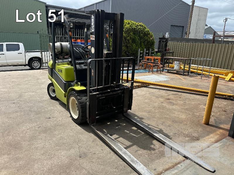 FORKLIFT, CLARK MOD: CL30 LPG SOLID TYRES 3 STAGE CONTAINER MAST 1800mm (L) FORKS HOURS: 2,761