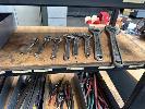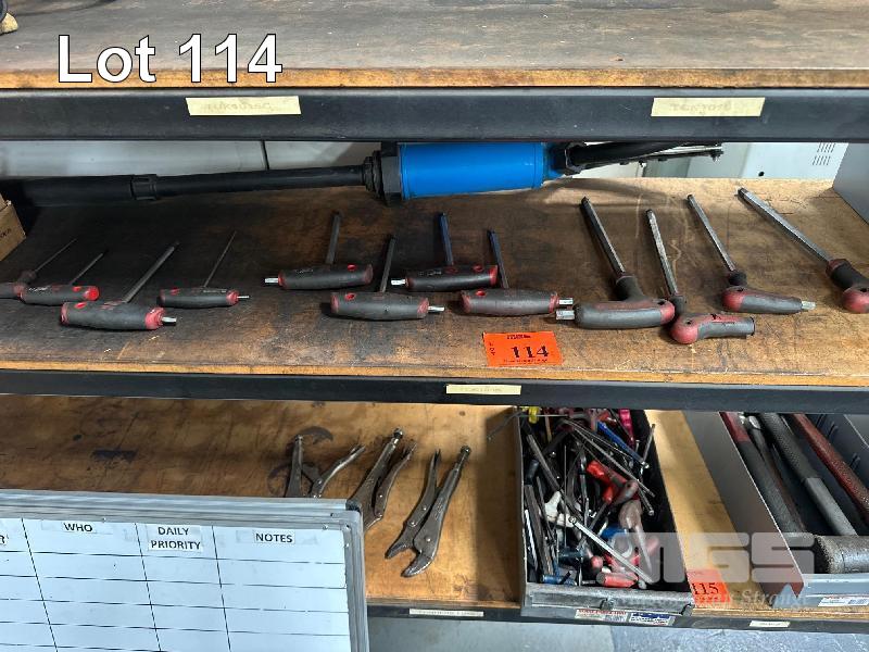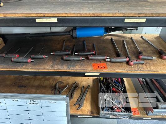 8 x SHIFTERS, HAND PUMP & ASSORTED HEX KEYS CONTENTSB= OF 1 SHELF.