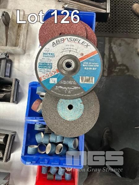 ASSORTED LINISHING RINGS & PAPERS, GRINDING STONES & CUT OFF DISCS