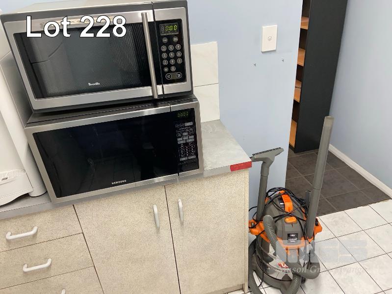 KITCHEN CONTENTS INCLUDING, 2 x MICROWAVES, FRIDGE FREEZER, FISHER & PAYKEL & VAX VACUUM CLEANER, 1250w