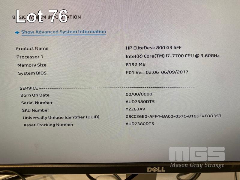 DESKTOP PC, HP ELITEDESK 800 G3 SFF, CORE i7 7700 (7TH GEN) @ 3.6GHz, 8GB DDR4 RAM, 256GB SSD, DVD-RW, INTEL HD VIDEO, 10 x USB, 1 x USB-C, WINDOWS 10 PRO INSTALLED (NO KEYBOARD, NO MOUSE) S/N:AUD7380DTS