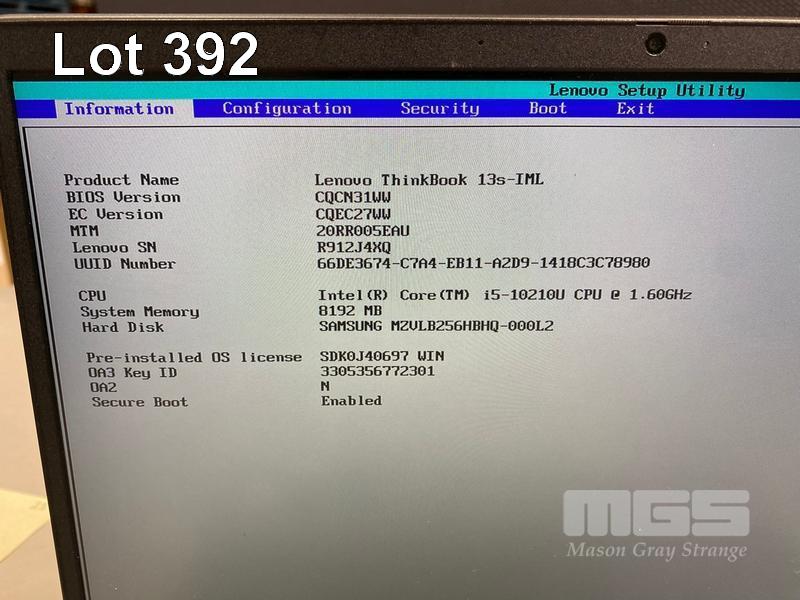 LAPTOP, LENOVO THINKBOOK 13s-IML, TYPE 20RR, CORE i5 10210U (10TH GEN) @ 1.6GHz, 8GB DDR4 RAM, 256GB NVMe M.2 SSD, 13.3" WIDESCREEN (1920x1080), INTEL UHD GRAPHICS, Wi-Fi, BLUETOOTH, WINDOWS 11 PRO INSTALLED & POWER SUPPLY