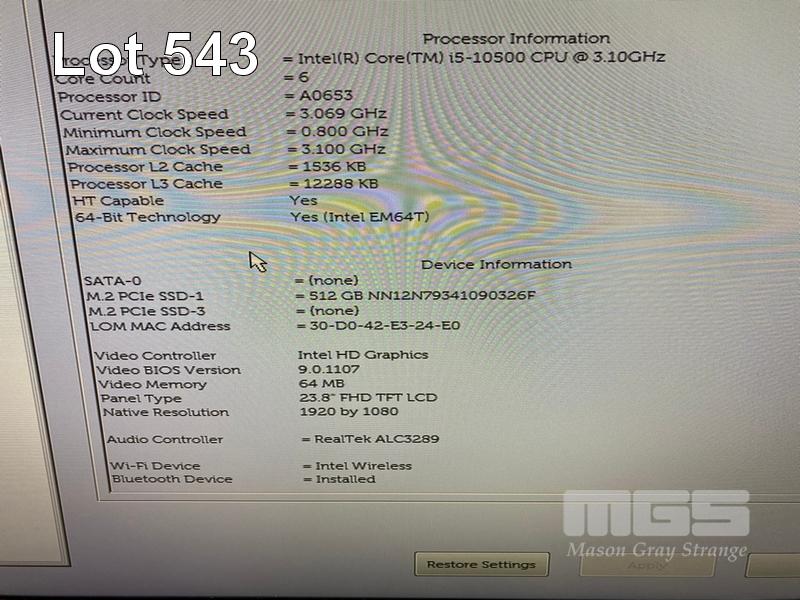ALL-IN-ONE PC, DELL OPTIPLEX 7480, CORE i5 10500 (10TH GEN) @ 3.1GHz, 8GB DDR4 RAM, 512GB NVMe M.2 SSD, INBUILT 23.8" FHD WIDESCREEN (1920x1080), INTEL HD VIDEO, WEBCAM, 5 x USB, 1 x USB-C, Wi-Fi, BLUETOOTH, WINDOWS 11 HOME INSTALLED, KEYBOARD & MOUSE S/N:GDT54F3
