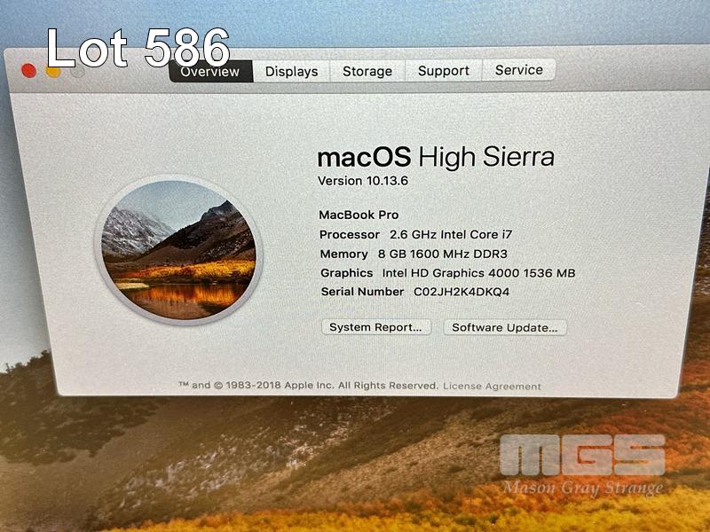 LAPTOP, APPLE MACBOOK PRO (A1398), CORE i7 3615QM (3RD GEN) @ 2.6GHz, 8GB DDR3 RAM, 256GB SSD, 15.4" RETINA DISPLAY (2880x1800), INTEL HD GRAPHICS, Wi-Fi, BLUETOOTH, MAC OS 10.13 INSTALLED & POWER SUPPLY S/N:C02JH2K4DKQ4