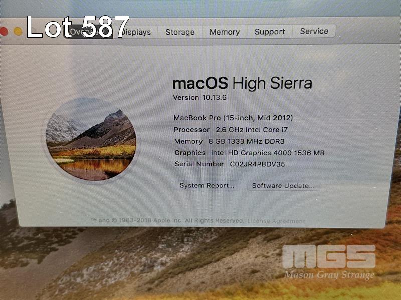 LAPTOP, APPLE MACBOOK PRO (A1286), CORE i7 3720QM (3RD GEN) @ 2.6GHz, 8GB DDR3 RAM, 1TB SSD, DVD-RW, 15.4" WIDESCREEN (1440x900), INTEL HD GRAPHICS, Wi-Fi, BLUETOOTH, MAC OS 10.13 INSTALLED & POWER SUPPLY S/N:C02JR4PBDV35