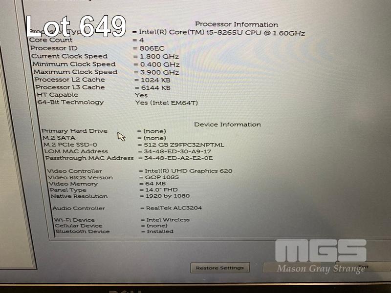 LAPTOP, DELL LATITUDE 5400, CORE i5 8265U (8TH GEN) @ 1.6GHz, 8GB DDR4 RAM, 512GB NVMe M.2 SSD, 14" WIDESCREEN (1920x1080), INTEL UHD GRAPHICS 620, Wi-Fi, BLUETOOTH, WINDOWS 11 HOME INSTALLED & POWER SUPPLY (NOTE: BATTERY NOT HOLDING CHARGE, MARKS ON SCREEN) S/N:9NZ7M13