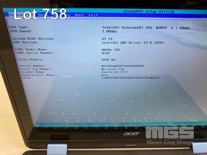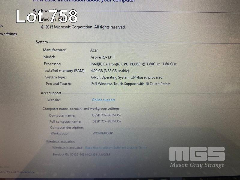 LAPTOP, ACER ASPIRE R3-131T, CELERON N3050 @ 1.6GHz, 4GB RAM, 32GB SSD, WINDOWS 10 HOME INSTALLED & POWER SUPPLY (NOTE: BATTERY NOT CHARGING)