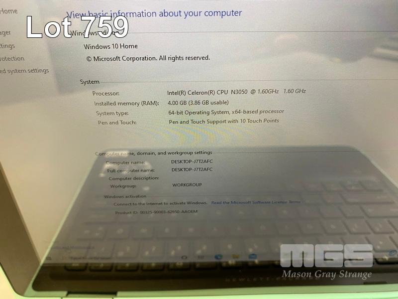 LAPTOP, HP PAVILION x360, CELERON N3050 @ 1.6GHz, 4GB RAM, 500GB SATA HDD, WINDOWS 10 HOME INSTALLED & POWER SUPPLY
