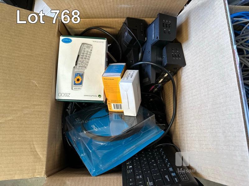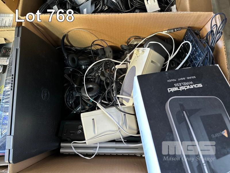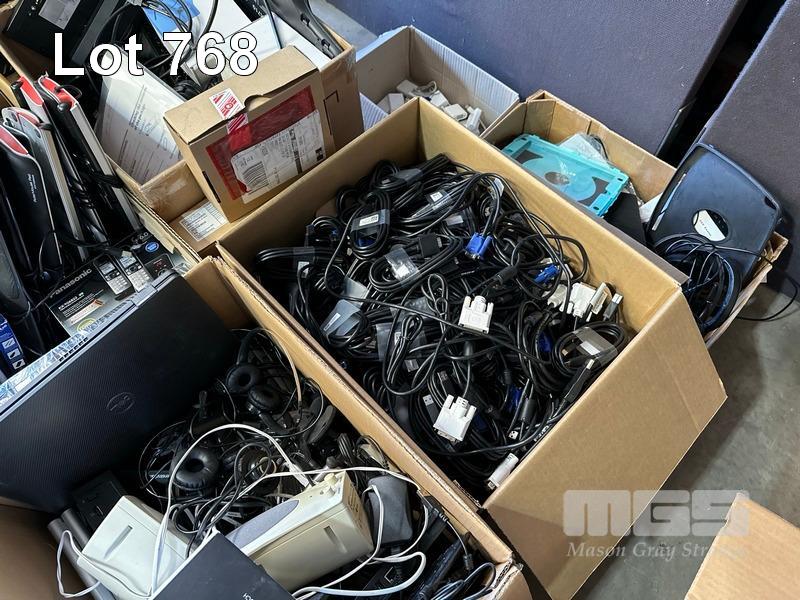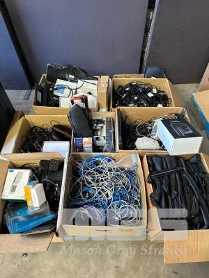 1 x PALLET LOT ASST CABLES, LAPTOP BAGS, NEWORK CABLES, HEADSETS, DIGITAL VOICE RECORDERS, ETC