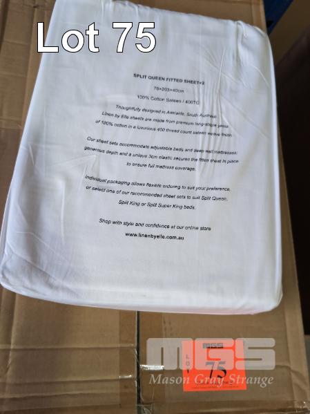 40 SPLIT QUEEN FITTED SHEETS. 760 X 2,039 X 400 MM. 100% COTTON SATEEN / 400TC. WHITE.