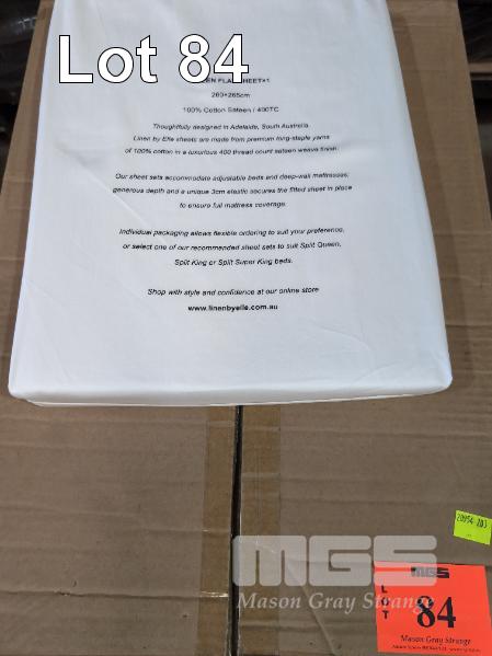 20 X QUEEN FLAT SHEETS. 2,600 X 2,650 MM. 100% COTTON SATEEN / 400TC. WHITE.