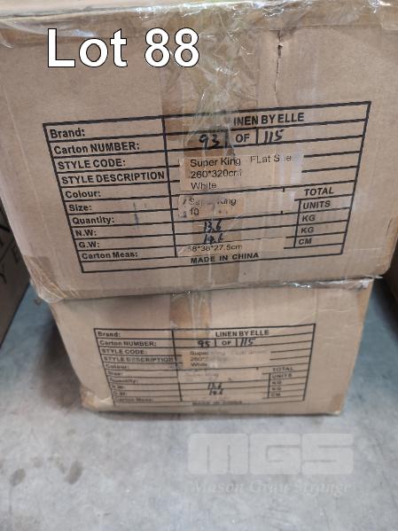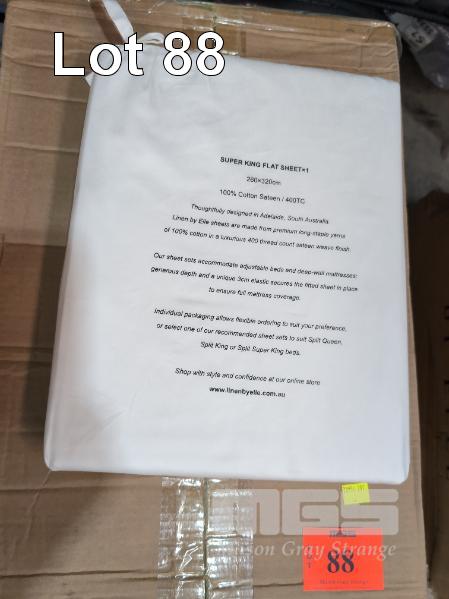 20 X SUPER KING FLAT SHEETS. 2,600 X 3,200 MM. 100% COTTON SATEEN / 400TC. WHITE.