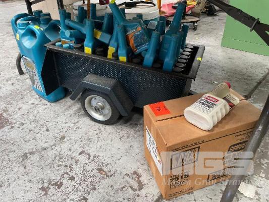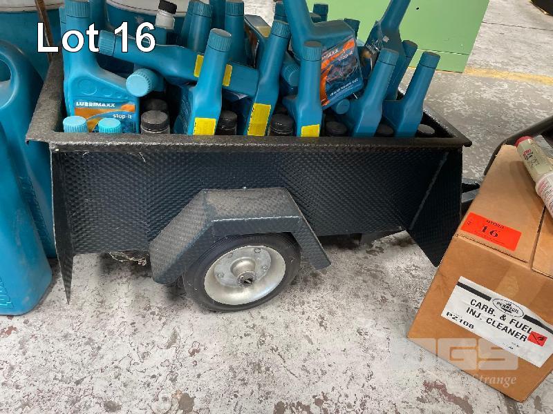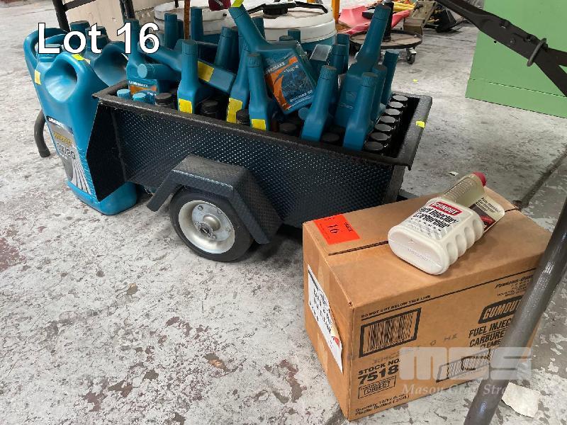 VARIOUS OILS AND LUBRICANTS INCLUDING 17 x OIL TREATMENT RRP $15.00/UNIT 2 x RAD STOP LEAK RRP $15.00/UNIT 4 x RADIATOR FLUSH RADIATOR RRP $15.00/UNIT 30 x RADIATOR STOP LEAK RRP $15.00/UNIT 4 x LUBRIMAXX POWERSYN0W20 RRP $75.00/UNIT 12 x CARB & INJECTOR CLEANER RRP $15.00/UNIT BULK OIL & DISPLAY TRAILER