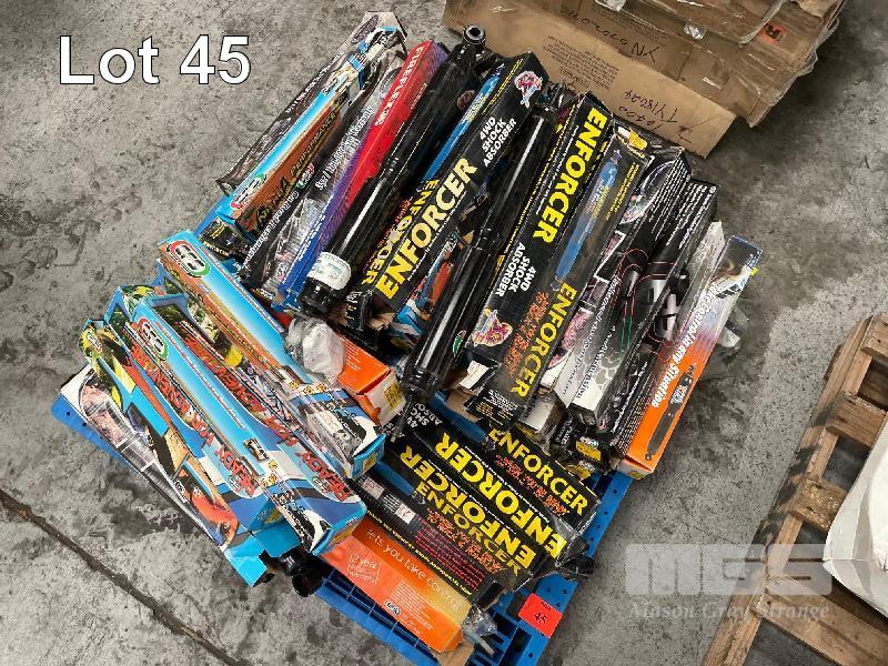 PALLET OF TUFFGAS SHOCK ABSORBERS INCLUDING 3 x TGP2076 REAR MQ/MK/G160 PATROL RRP $145.00/UNIT 3 x TGP2077 REAR PATROL G60 FRONT ALL RRP $145.00/UNIT 4 x TGP2081 REAR F/H/HZJ7# 632 X 385 & LUX RRP $132.00/UNIT 2 x TGP2082 FRONT PAJERO 89- TRITON 4X4 & LUX 2WD RRP $140.00/UNIT 4 x TGP2088 FRONT HILUX IFS 11/85-05 RRP $132.00/UNIT 2 x TGP2091HD HD FRONT GQ/Y60 & BUND/79# RRP $145.00/UNIT 1 x TGP2490L HD HYDRAULIC FRONT 80/100/105# RRP $132.00 5 x TGP2491L HD HYDRAULIC FRONT GU WAGON & 78/79# RRP $145.00/UNIT 7 x TGP2492L HD HYDRAULIC REAR 78/79# GU WAGON RRP $132.00/UNIT 3 x TGP2636 REAR LUX -84 40# 60# -10/85 & NAVARA RRP $132.00/UNIT 1 x TGP2637 FRONT F/HZJ7/6# 581X349 RRP $132.00 9 x TGP2639 FRONT HILUX ALL MODELS RRP $132.00/UNIT 2 x TGP2650 REAR HILUX 1/84- AND 6# 10/85- RRP $132.00/UNIT 1 x TGP2682 FRONT 75# REAR F/HZJ80/100# 90- RRP $132.00 PLEASE NOTE: CONTENTS ARE ESTIMATED