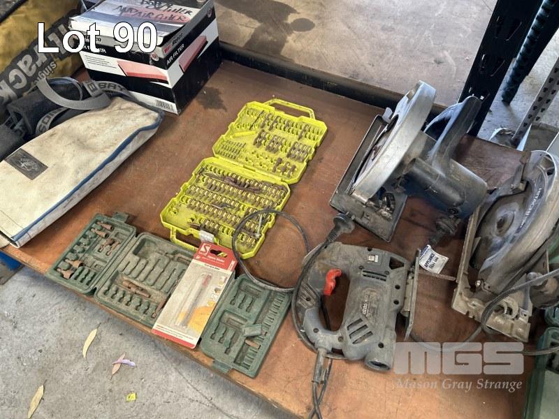 2 x CIRCULAR SAWS, JIGSAW & ORBITAL SANDER, 240V, DRILL & DRIVE BIT SETS, ETC