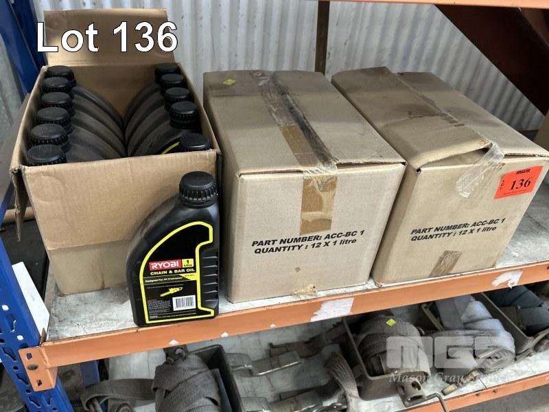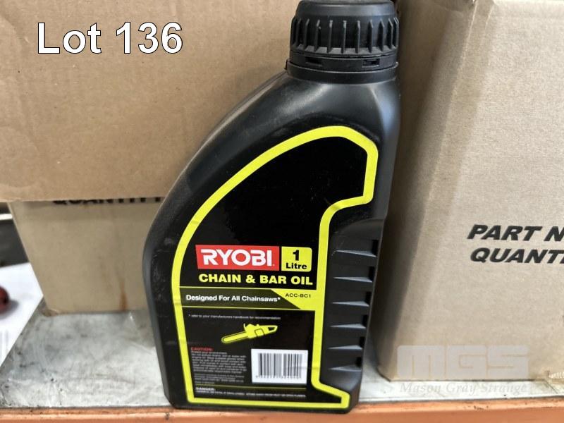 36 x 1 LITRE BOTTLES CHAINSAW BAR LUBE, RYOBI 3 x BOXES