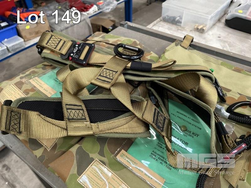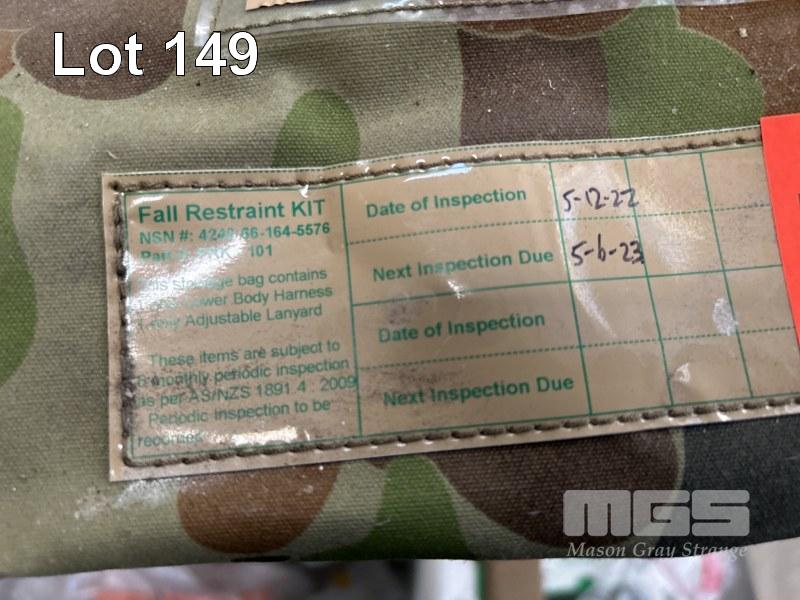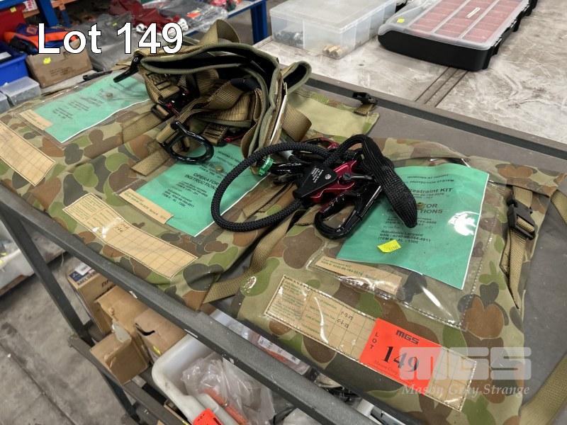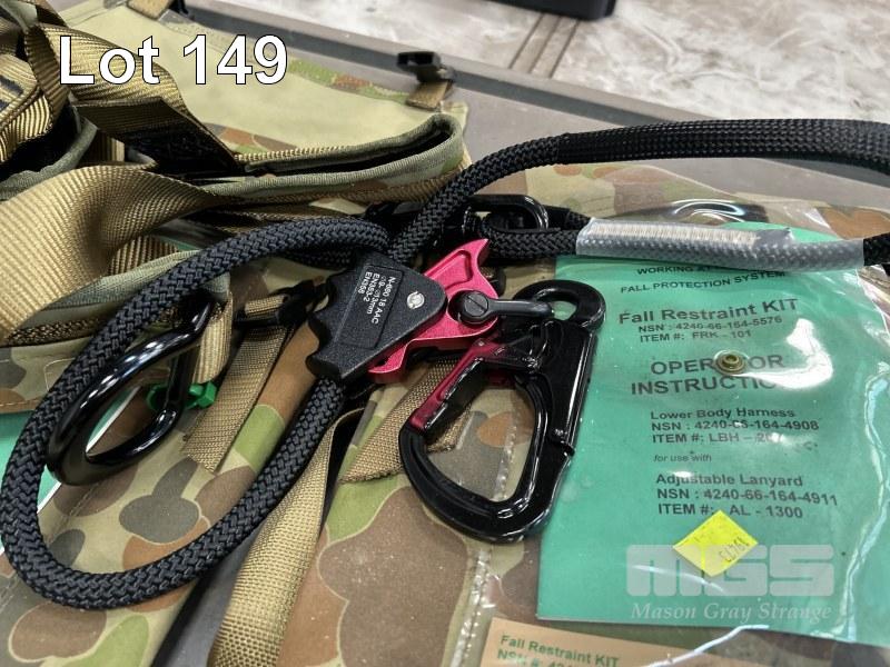 3 x FALL ARREST KITS, EACH INCLUDING PERSONNEL HARNESS, ADJUSTABLE LANYARD & SELF ARREST DEVICE IN CARRY BAG (AS NEW)