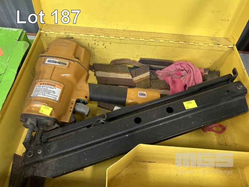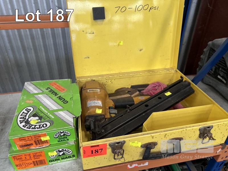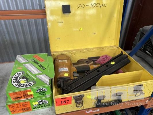 PNEUMATIC AIR NAIL GUN, STANLEY BOSTITCH WITH 2 x BOXES NAILS IN METAL CASE