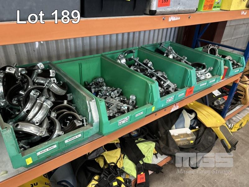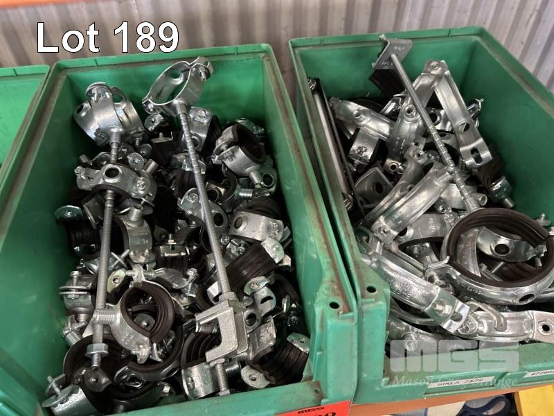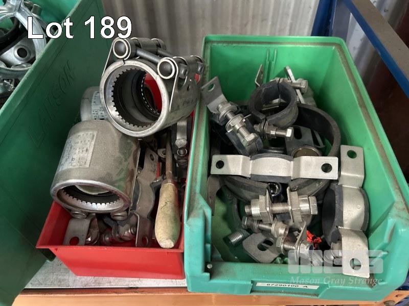 ASSORTED GALV STEEL PIPE SUPPORT CLAMPS & FITTINGS, ASSORTED SIZES 6 x TUBS