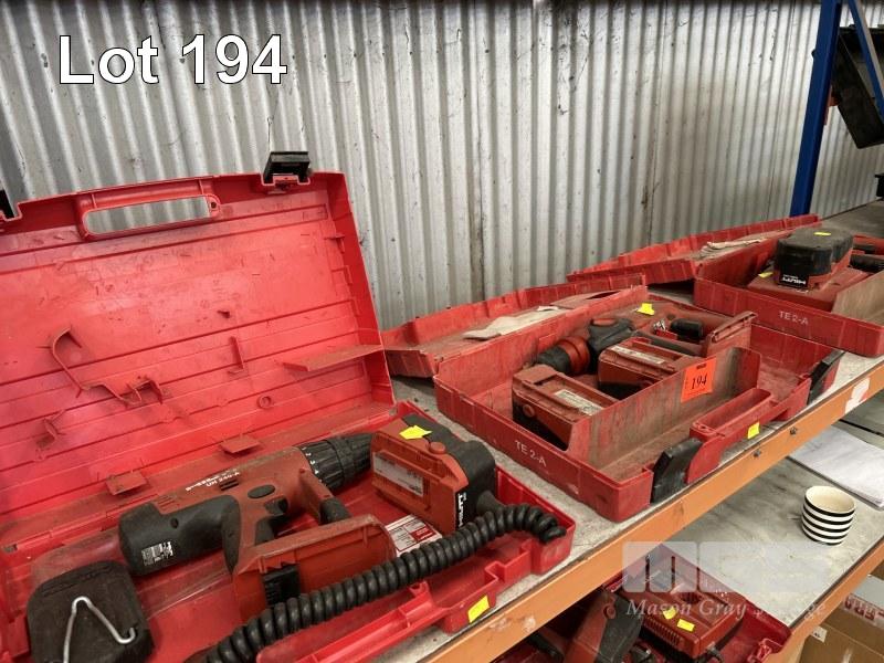 3 x HILTI DRILLS WITH BATTERY & CHARGERS, TEK DRILL MOD: UH240A & 2 x HAMMER DRILLS