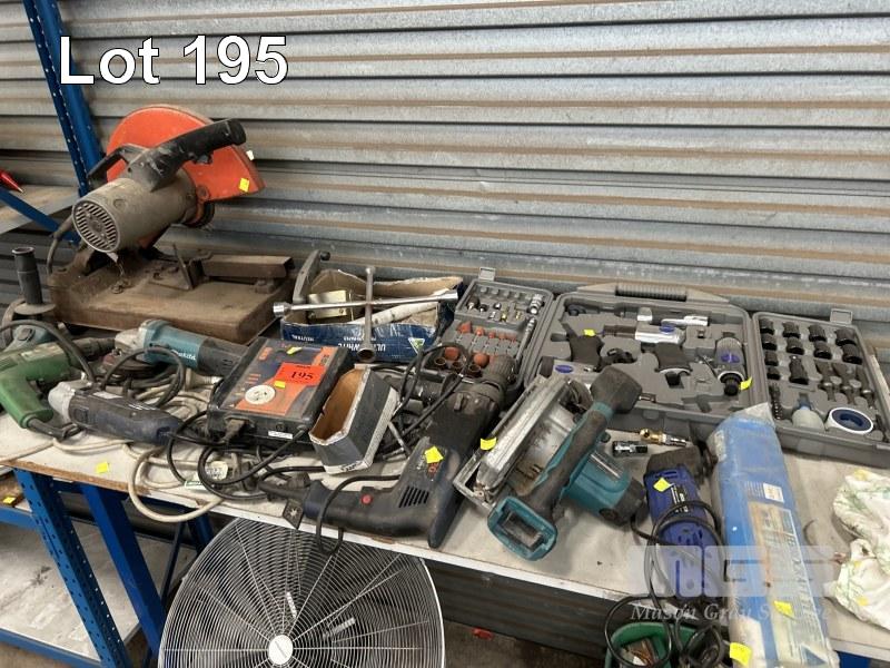 33 PIECE AIR TOOL SET, NEW IN CASE & MAKITA SAW, ETC