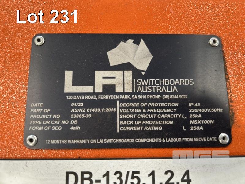 FITTED WITH SCHNEIDER COMPACT INS250 MAIN ISOLATOR &