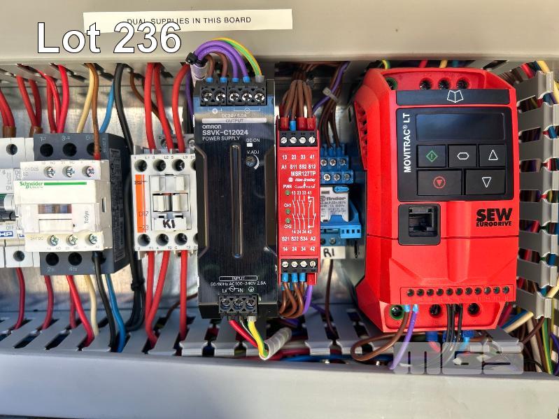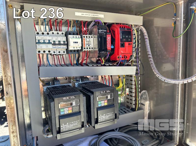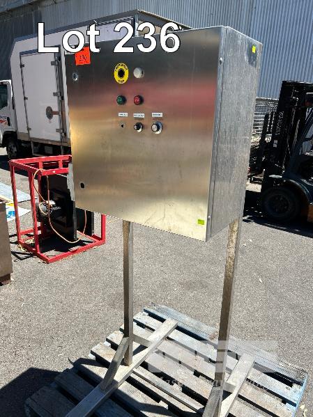 POWER CONTROL, STAINLESS STEEL FITTED WITH 2 x OMRON MX2 INVERTERS, SEW EURODRIVE, ETC SINGLE DOOR ON STAND, 600 x 300 x 600mm (H) STAND HEIGHT: 1700mm