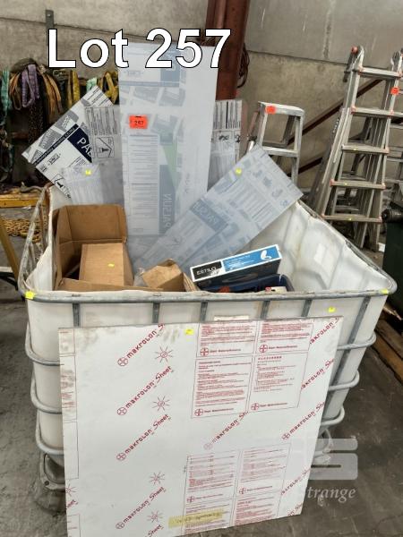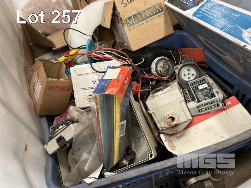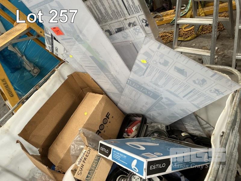 ASSORTED ELECTRICAL PLUGS, GPO'S, POLYCARBONATE SHEETS, LIGHTS, TOILET SEAT, ETC