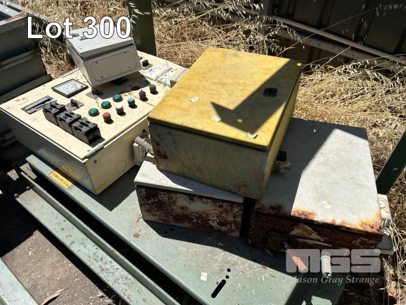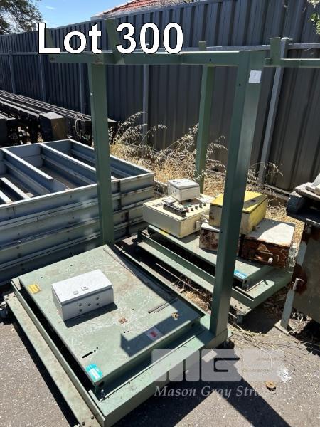 2 x STEEL TROLLEY SUPPORT FRAMES HEAVY DUTY, 1200 x 950 x 1630mm (H) WITH 5 x ELEC CONTROL BOXES