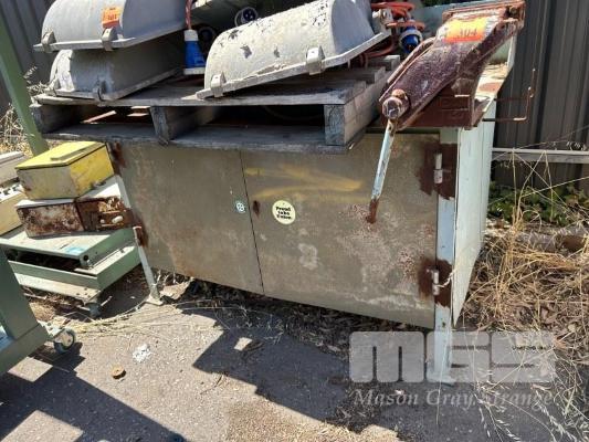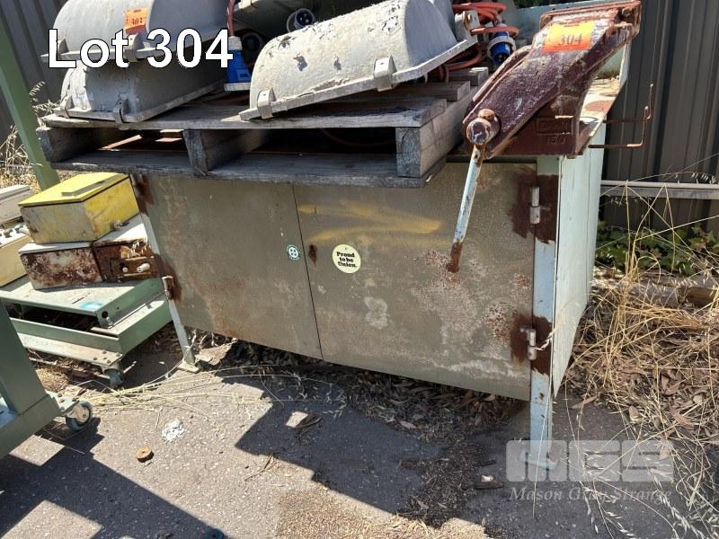 STEEL WORK BENCH, 1400 x 1000 x 900mm (H), 2 DOOR, PLATE TOP WITH DAWN 150mm OFFSET VICE