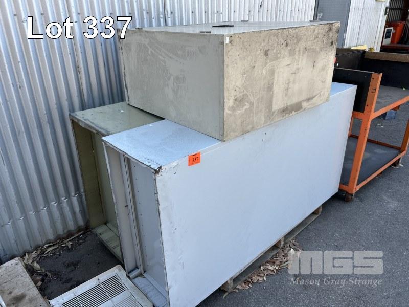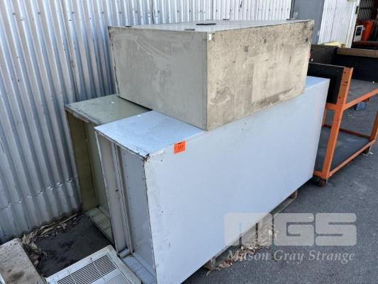 STORAGE CABINETS, 2 DOOR BEIGE & GREY STEEL 2 @ 900 x 1800mm (H) & 1 @ 920 x 920mm (H) 1 x PALLET