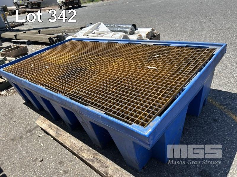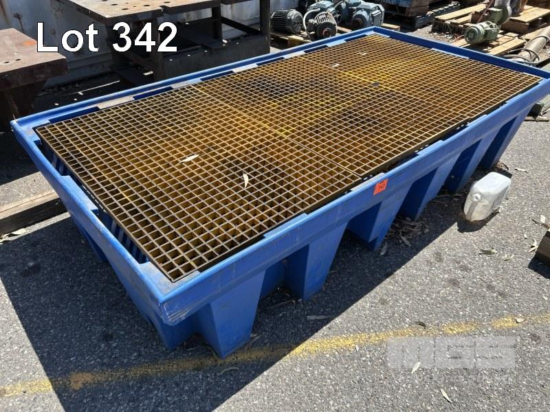 DRUM SPILL BASE, POLY CONSTRUCTION, BLUE MAX LOAD: 3200kg 2540 x 1310 x 520mm(H) INCLUDING CONTENTS OF OIL