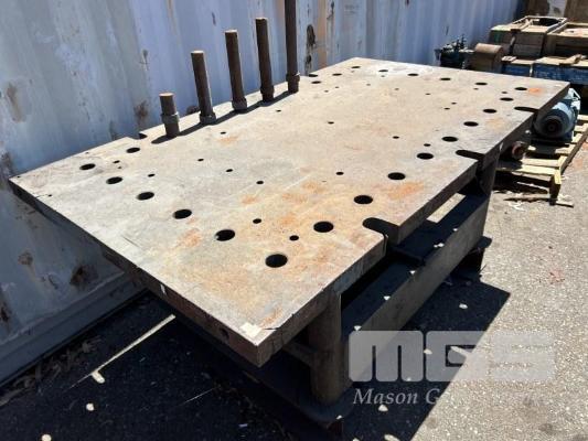 MANDREL TABLE, SUIT JIGGING FOR ENGINEERING/FABRICATION HEAVY DUTY PLATE STEEL TOP 50mm THICK WITH GRID HOLES & BARS 1730 x 1200 x 780mm (H)