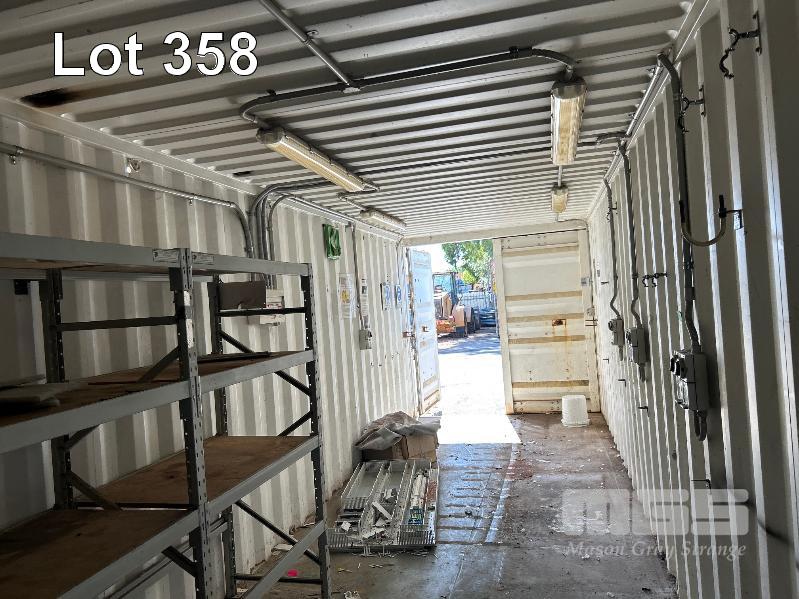 40' SHIPPING CONTAINER, WHITE NO: 4188640 WATER TIGHT FITTED WITH LIGHTING, POWER OUTLETS, SHELVING, ROOF TOP VENT & TOP MOUNTED FIXTURES TO SUIT DOME