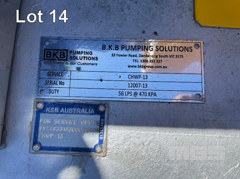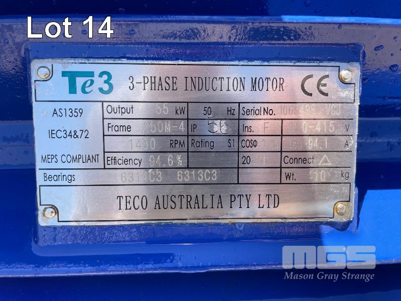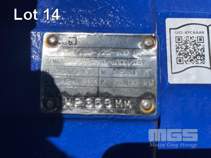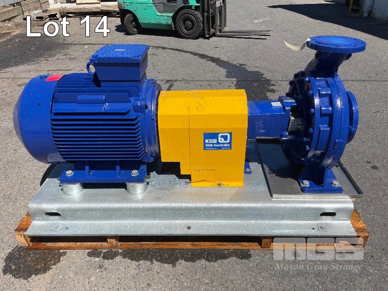 KSB HIGH VOLUME INDUSTRIAL WATER PUMP WITH 3 PHASE INDUCTION MOTOR, INDUCTION MOTOR: 55kW, SERIAL: 1065498 VCJ, FRAME: 250M-4, RPM: 1480, DOM: 2021, 415V KSB PUMP: TYPE: ETN 150-125-400 GBSAA, Q: 311.73m3/h, n: 1484 rpm, H: 52.311, P: 75.00kw ON SKID BASE WITH INSTALLATION/ OPERATING MANUAL