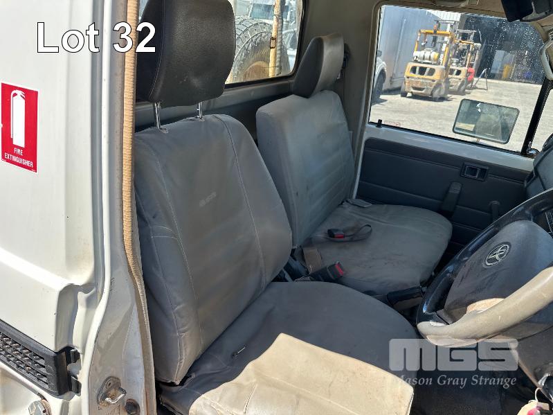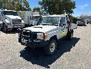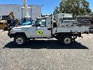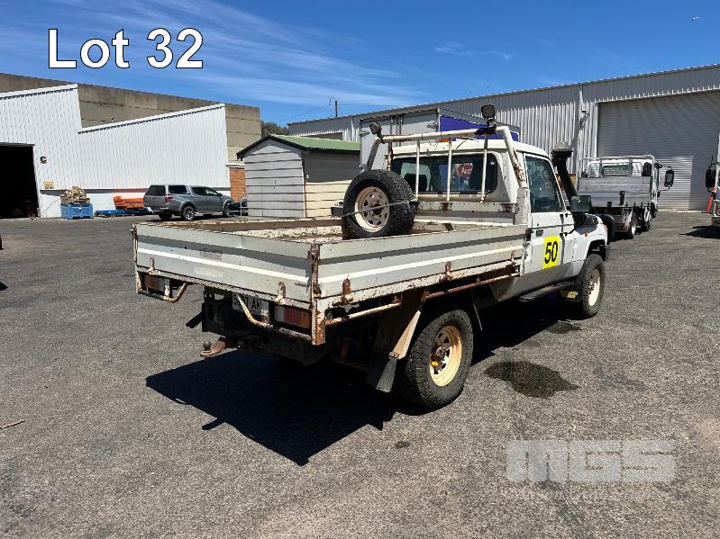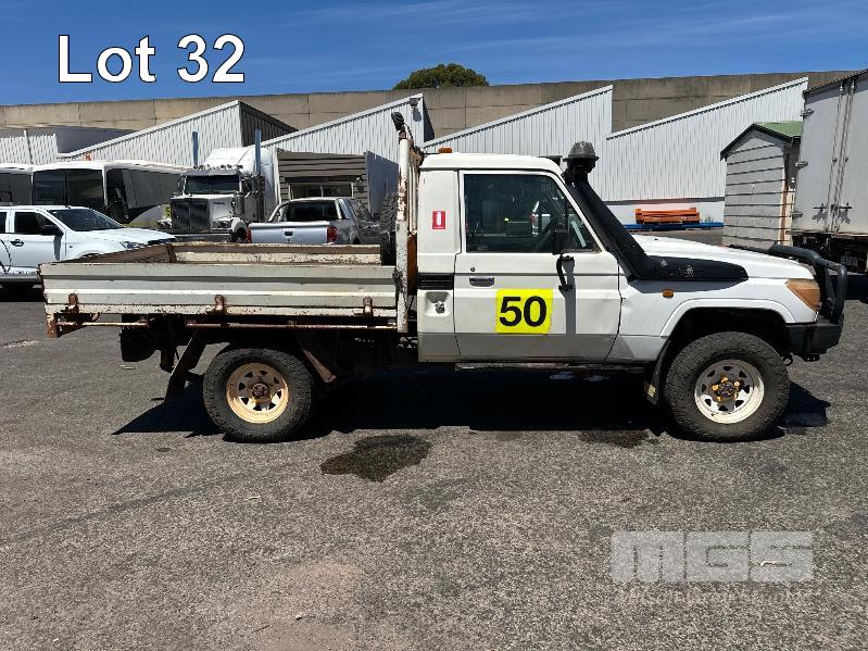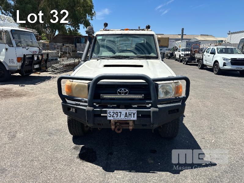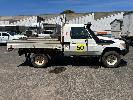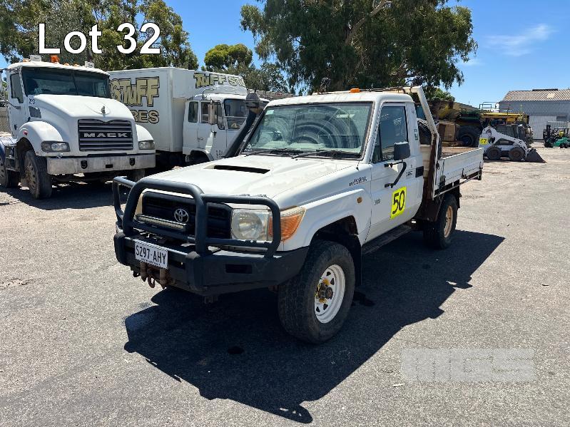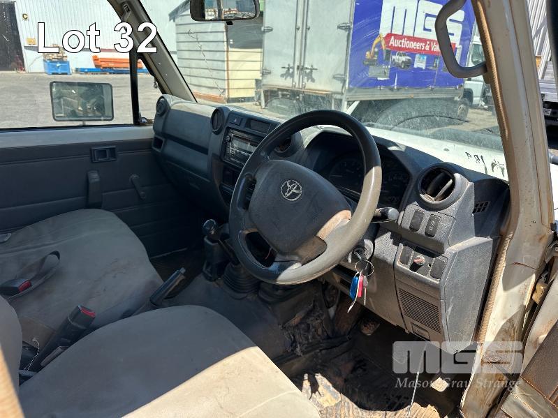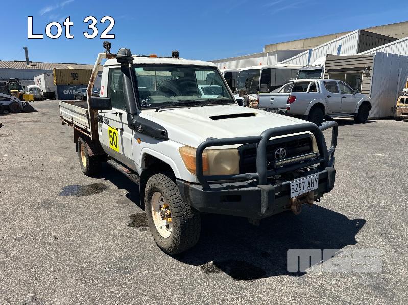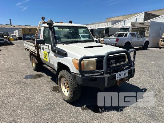 2010 TOYOTA LANDCRUISER WORKMATE VDJ79R 09 UPGRADE SINGLE CAB TRAY TOP 4 x 4 REG: S297 AHY (SA) VIN: JTELV71J800016957 ODO: 402,498kms SHOWING 4.5L V8 TURBO DIESEL, 5 SPEED MANUAL TRANSMISSION, WHITE DUCO, 2 DOORS, 2 SEAT, 4 x 4 AIR CON, BULL BAR, CARGO BARRIER, DECALS, POWER STEERING, SPARE WHEEL, STEEL TRAY, TOW BAR, KEY #39 (WITH 1 KEY/S)