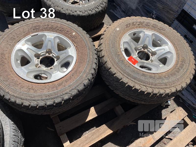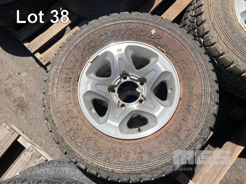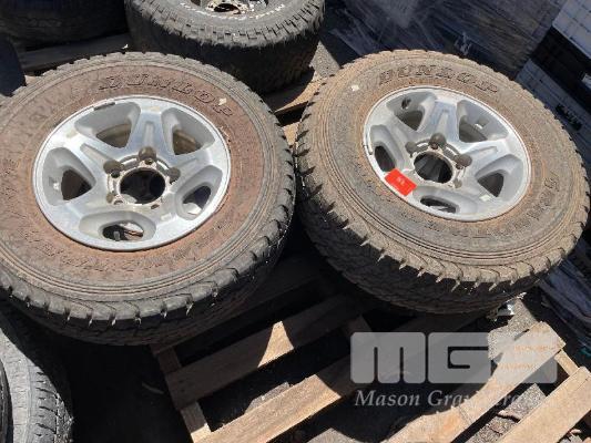 4 x TOYOTA 79 SERIES LANDCRUISER ALLOY RIMS, 5 STUD & TYRES, DUNLOP GRAND TREK ATI
