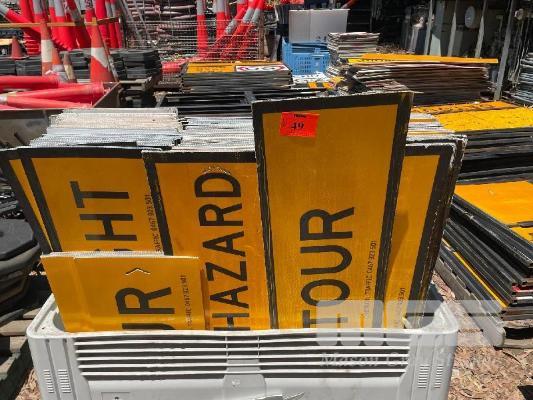 LARGE QTY ASSORTED CORFLUTE ROAD SIGN INSERTS, APPROX 200, NALLY BIN NOT INCLUDED