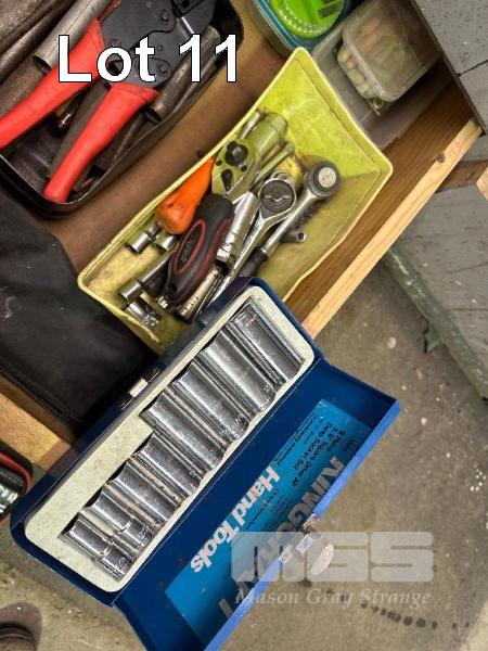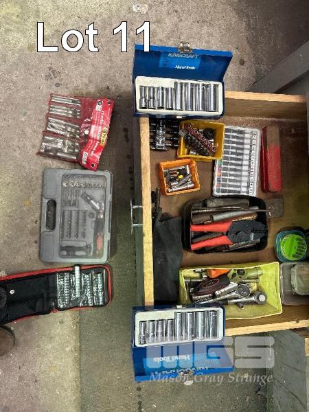 1 x DRAWER OF TOOLS INCLUDING RATCHETS, DRIVER SET, SOCKET ADAPTORS, MINI DRIVERS, K/C LONG SERIES SOCKETS, HOLE PUNCH SET, ETC