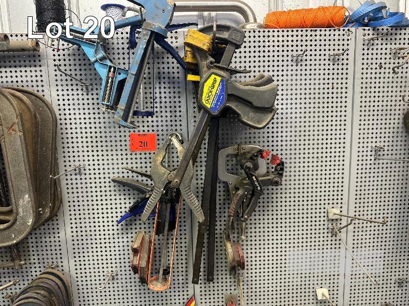 5 x QUICK ACTION CLAMPS, WELDERS MAGNETS, SPRING CLAMPS, PINCH CLAMP, SQUARE VICE & CAULKING GUNS