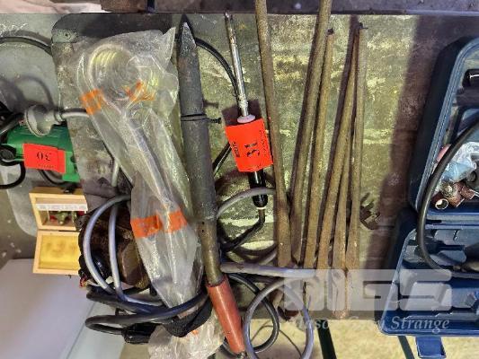 2 x SOLDERING IRONS, 3 x BLACKSMITH TONGS & IMMERSION HEATER