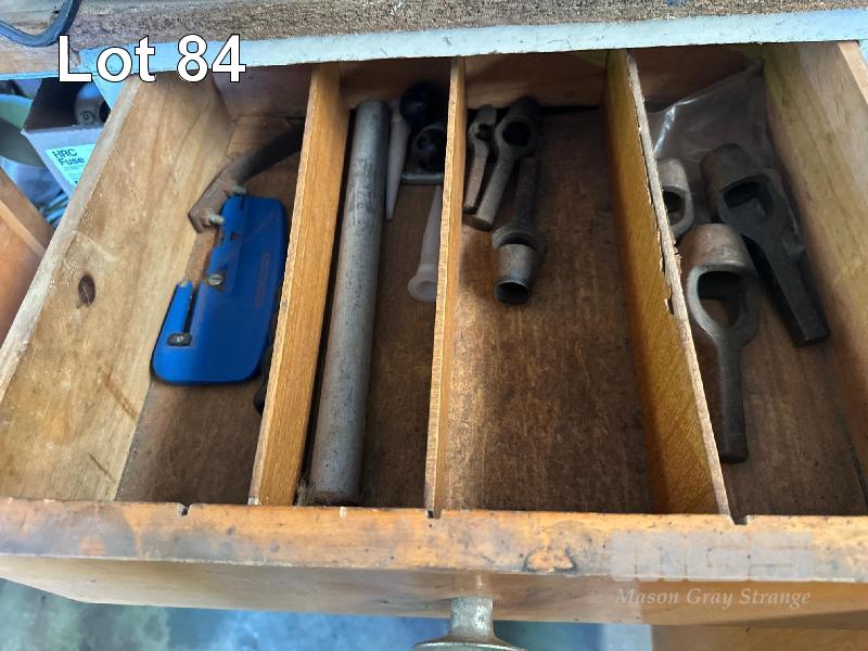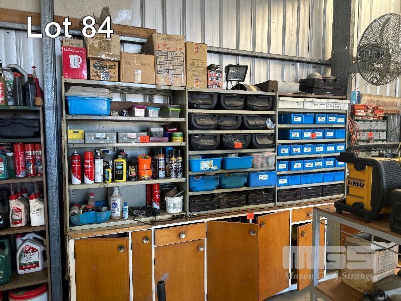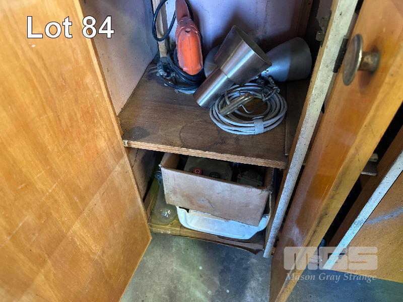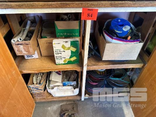 TIMBER CABINET & STEEL SHELF UNIT & CONTENTS OF TIMBER CABINET ONLY, INCLUDING WAD PUNCHES, ELECTRICAL, CABLE, AIR REGS, PARTS, ETC