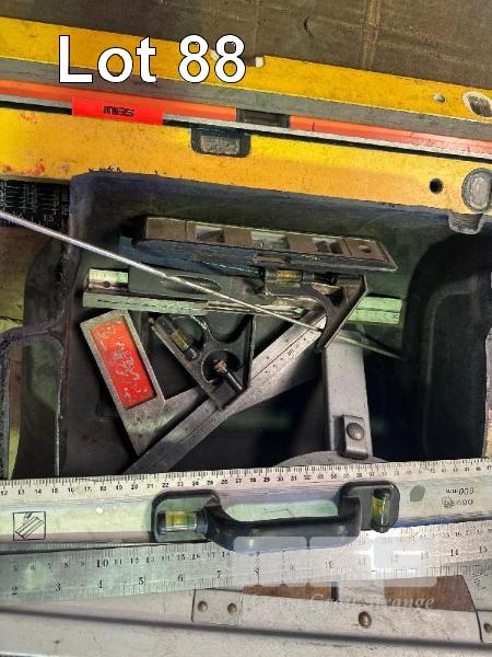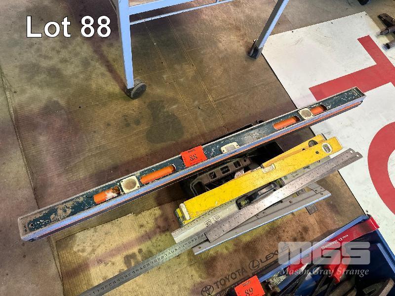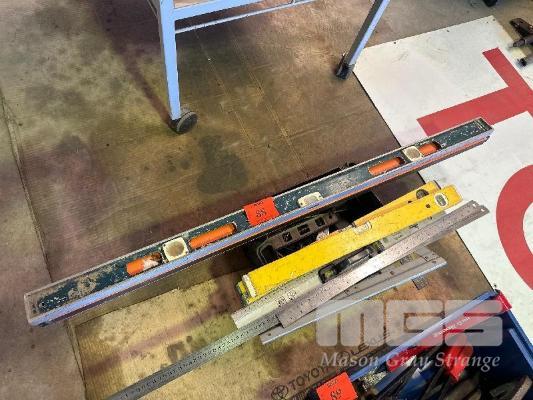 MEASURE EQUIPMENT, SET SQUARES, RULERS, SPIRIT LEVELS, ETC 1 x TUB