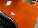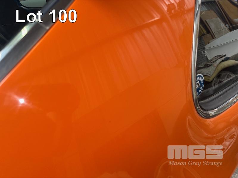 ORANGE DUCO, BLACK VINYL UPOLSTERY WITH CLOTH INSERTS & CENTER CONSOL,